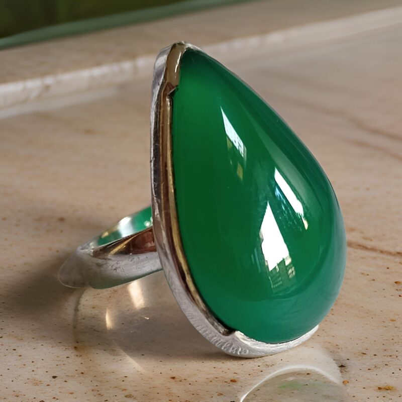 Green Onyx Ring 925 Sterling Silver Elegance and Natural Beauty Combined