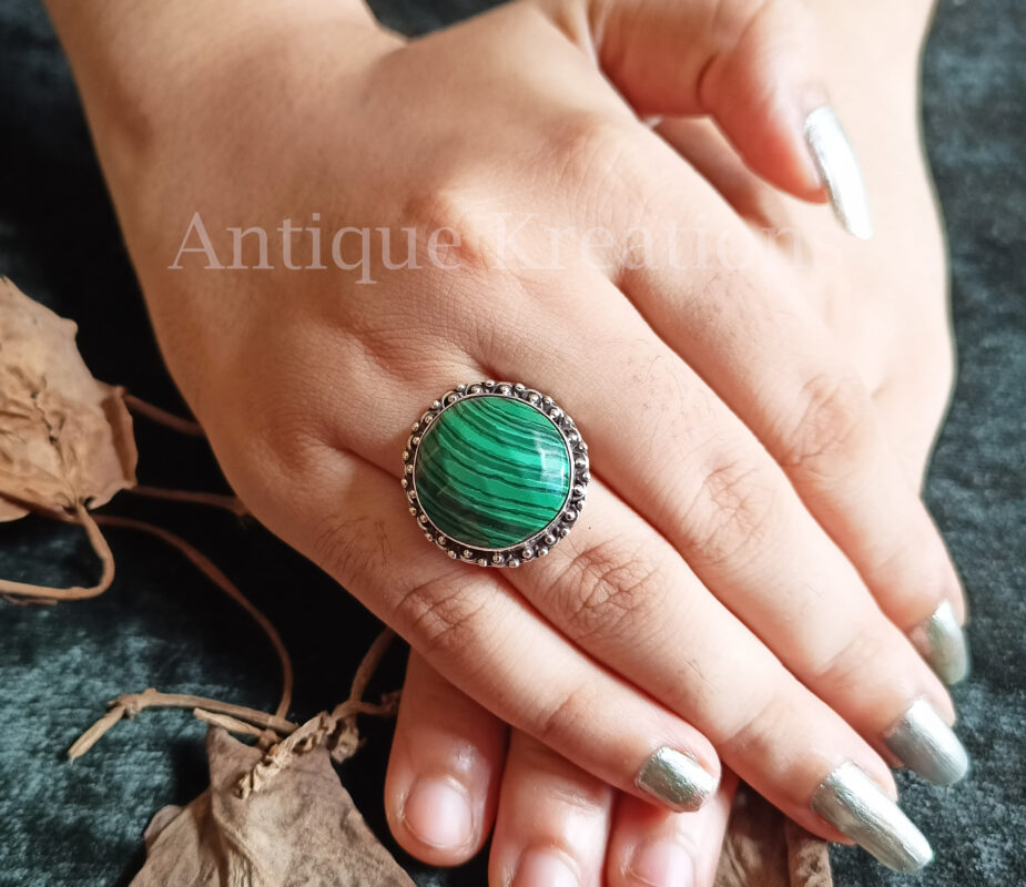 Natural Malachite Ring, 925 Sterling Silver Ring, Malachite Stone Ring, Malachite Women's Jewelry, Gemstone Ring, Gift For Her, Gift For Mom
