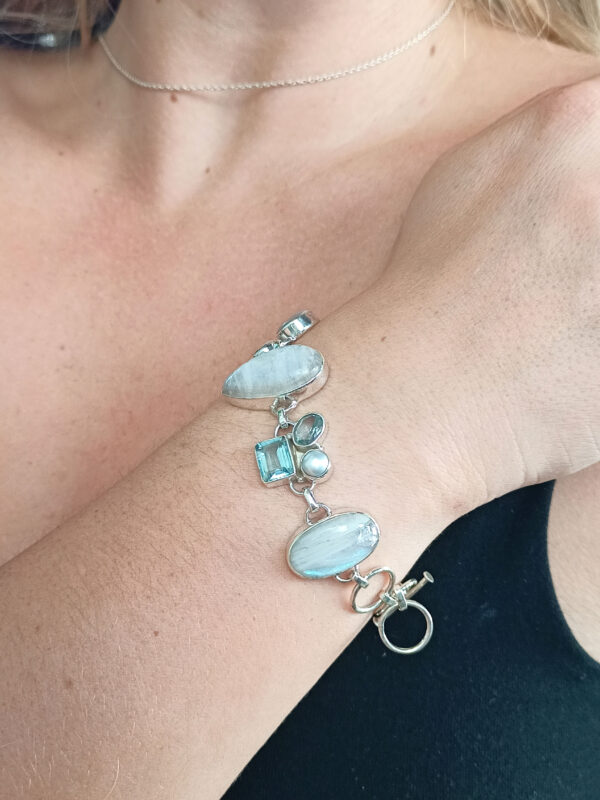 Blue Topaz And Moonstone Bracelet, 925 Sterling Silver Bracelet, Topaz And Moon Gemstone Bracelet for Women, Wedding Bracelet, Gift for Her