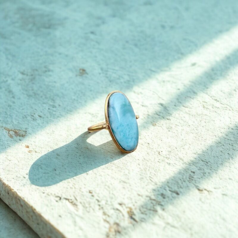 Larimar Oval Ring, 925 Silver Ring, Gold Plated Larimar Ring, Minimal Statement Ring, Handmade Silver Ring, Anniversary Gift For Her