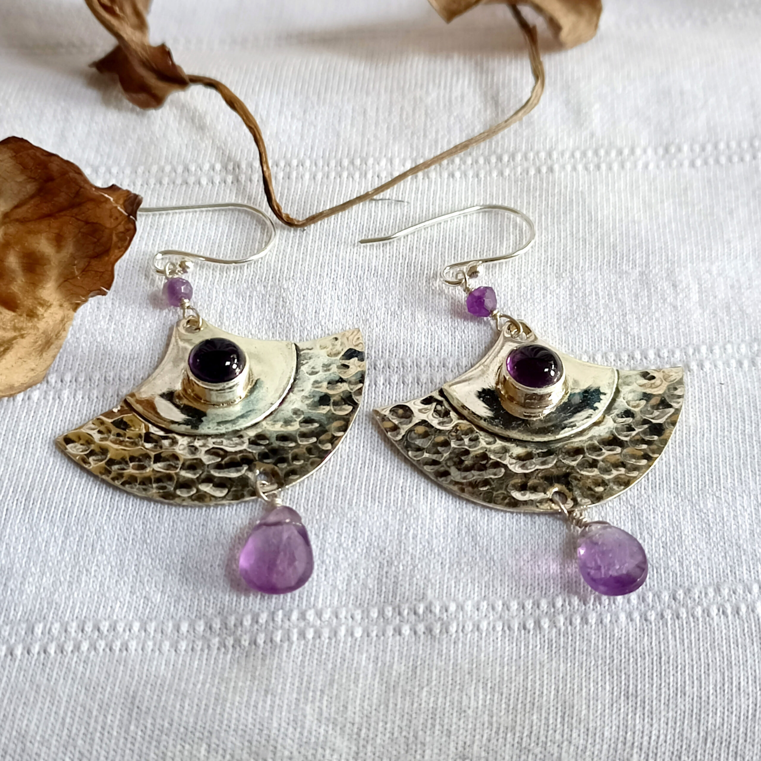 Celestial Amethyst Fan Earrings – Handmade 925 Silver