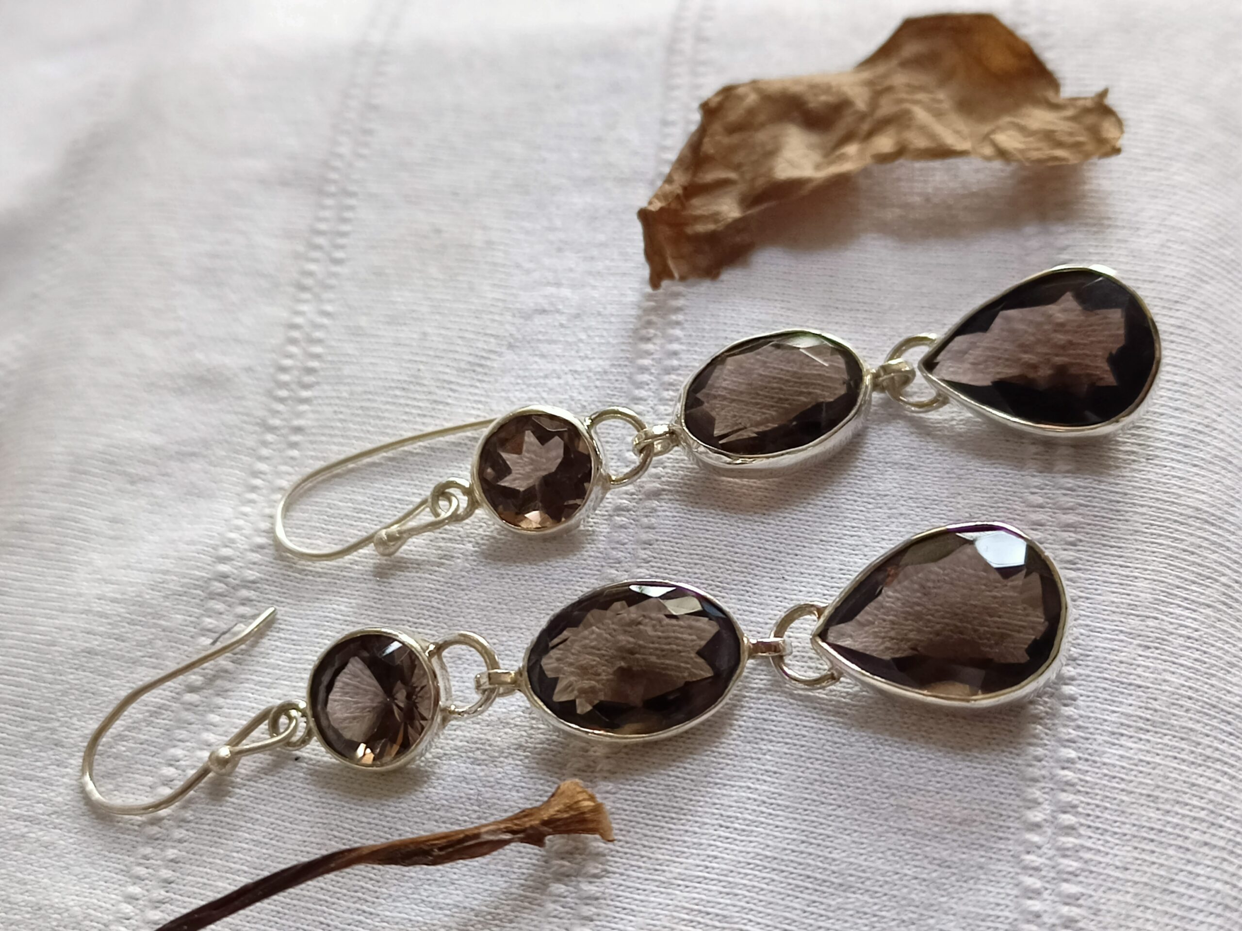 Long Smoky Quartz Earrings, 925 Sterling Silver Smoky Quartz Earrings, Dangle Smoky Quartz Earrings For Her, Earrings For Mom, Gift For Her