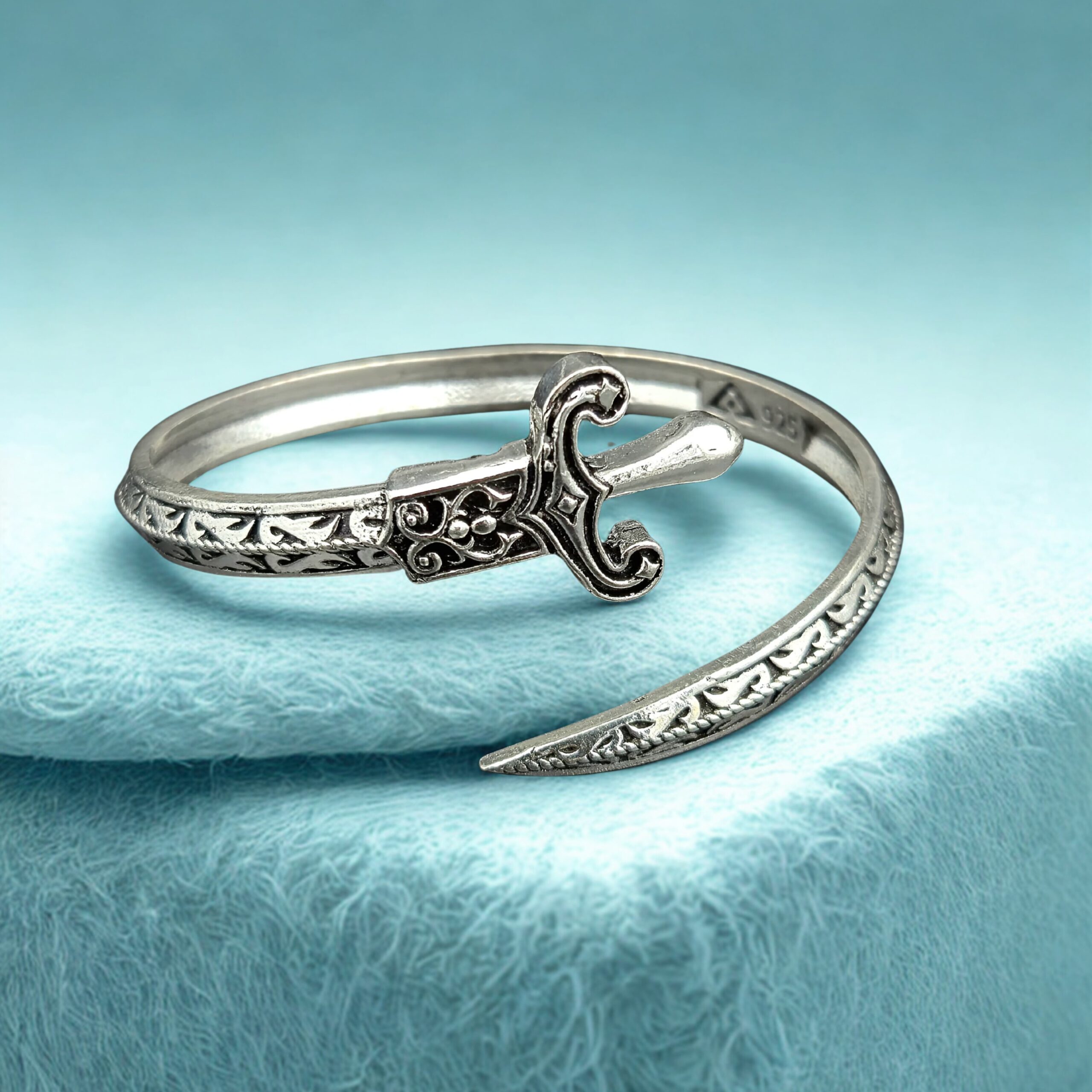 Vintage Sword Bracelet 925 Silver | Handmade Warrior Cuff Bracelet | Unisex Statement Silver Bangle